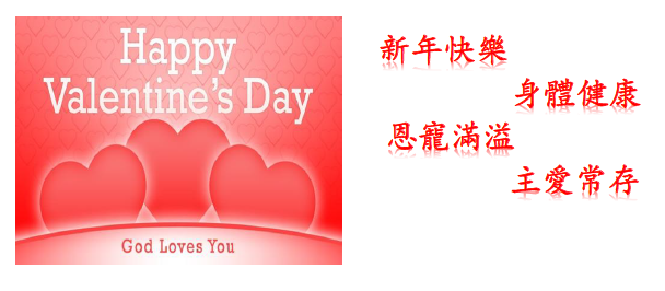 1) 今日2月14日(星期日) 我們隆重慶祝新春牛年﹐中英文聯合彌撒是上午十時正﹐感謝天主在過去一年所賜無數恩典﹐並祈求來年一切順利﹐使疫情早日結束﹐生活回復正常。