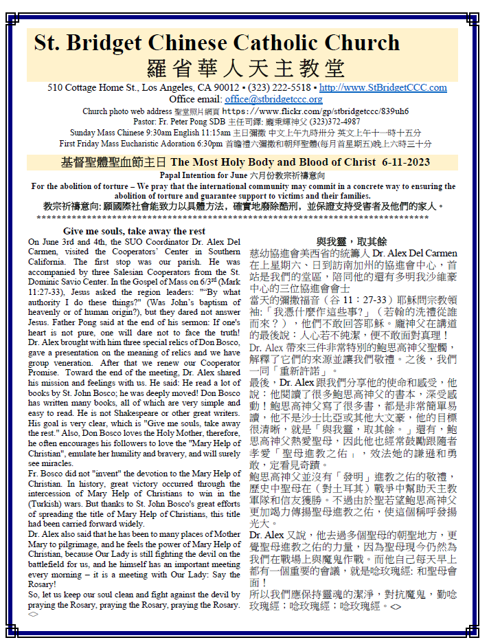 2) Today June 11, 2023, The Parish Pastoral Council meeting will be held at 1:30pm. At SJH. Those who would like to sit in are welcome.