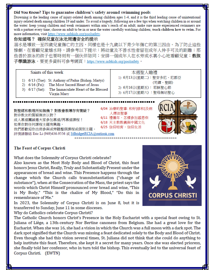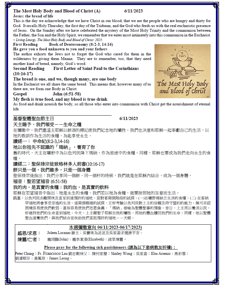 基督聖體聖血 節 主日 The Most Holy Body and Blood of Christ 6-11-2023