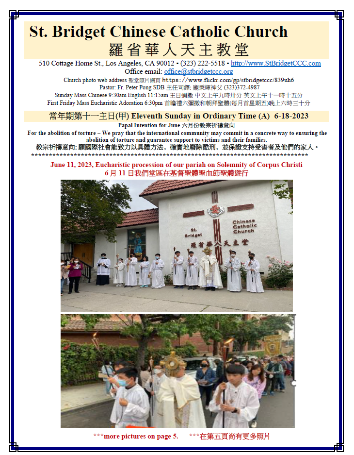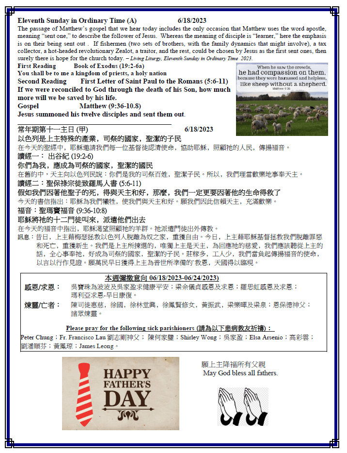 常年期第十一 主日 甲 Eleventh Sunday in Ordinary Time (A) 6-18-2023