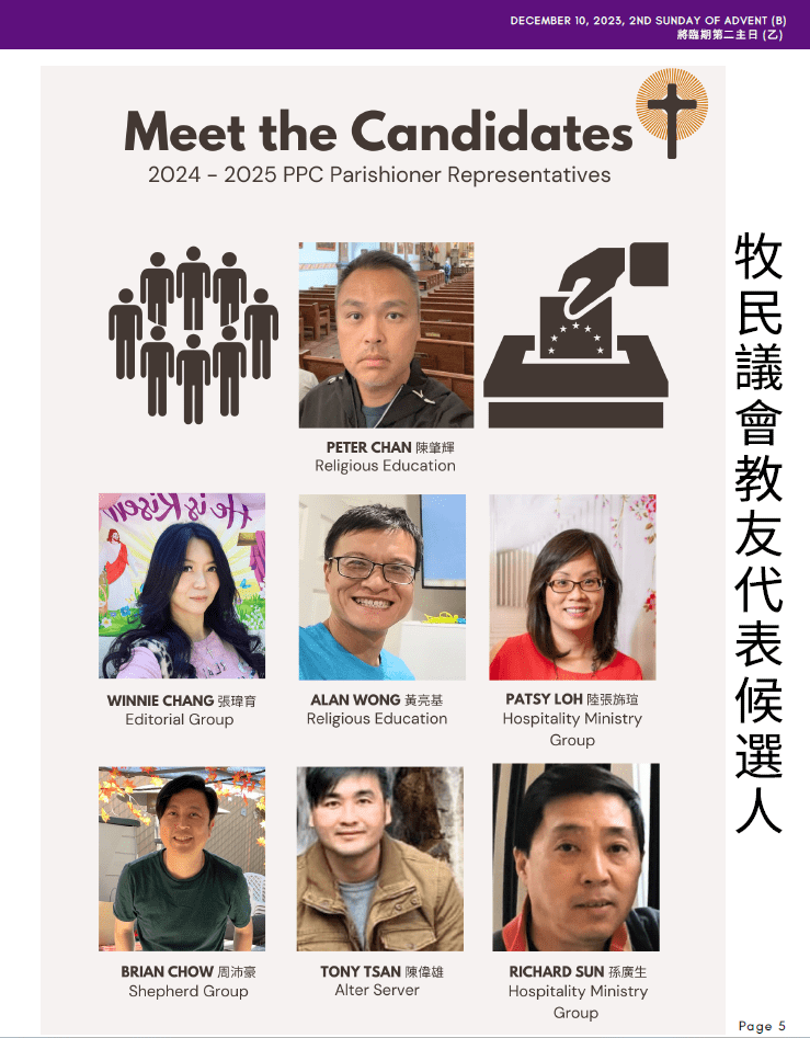 3.The Holy Family Society members meeting and the Officers Election for the next two-years term 2024-2025 will be held on Dec30th, 2023 (Saturday) at 10:45 am. There’s a Mass at 9:30 am before the meeting, please come and join.