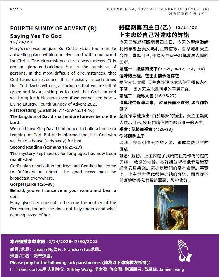 將臨期第四主日(乙) 4TH SUNDAY OF ADVENT (B) 12-24-2023
