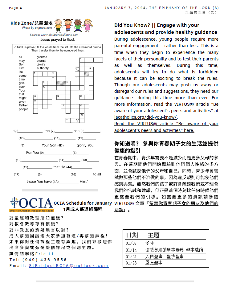 主顯節(乙) THE EPIPHANY OF THE LORD (B) 1-7-2024