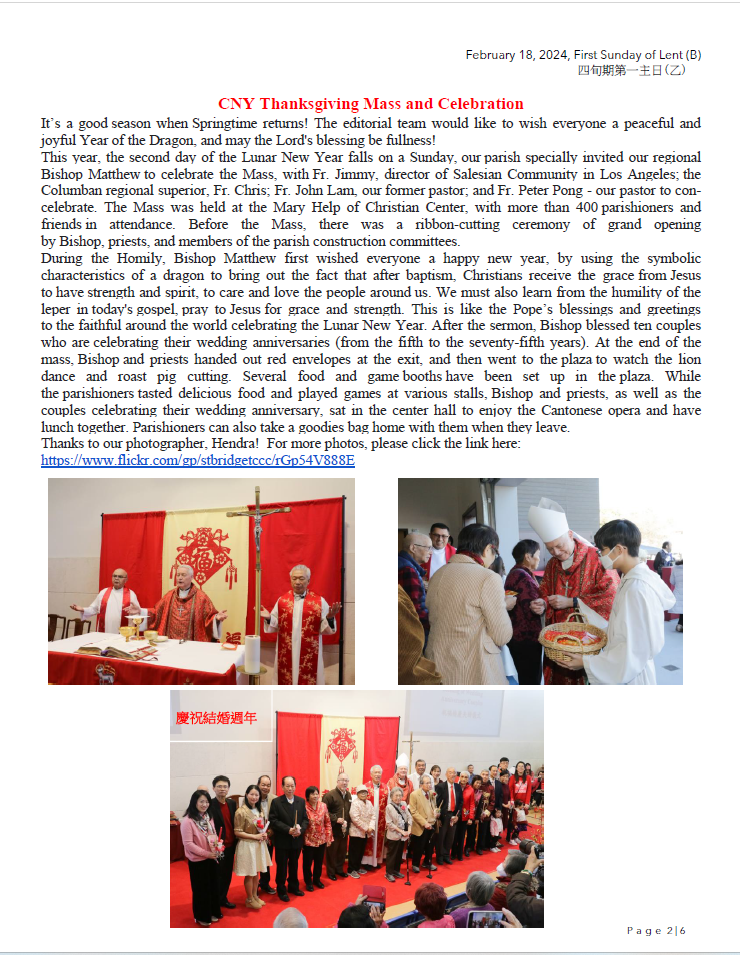 3)February 19 (Monday): Presidents’ Day is a public holiday; the church office will be closed. In case of emergency, please call Fr. Pong: 323-372-4987.