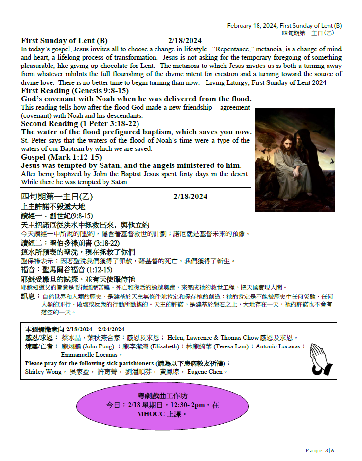 四旬期第一主日(乙) First Sunday of Lent (B) 2-18-2024