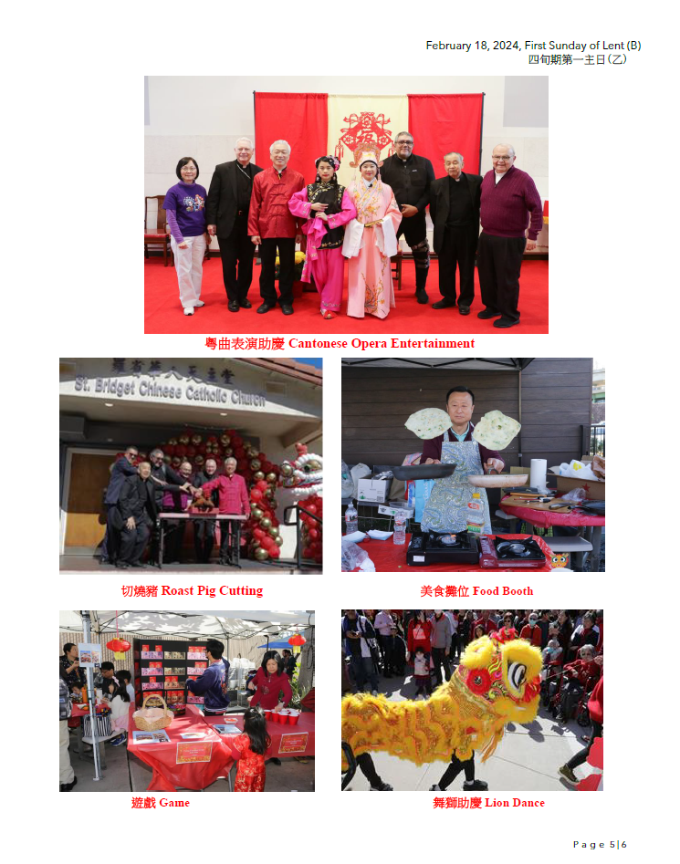 4)February 23 (Friday): 1st Friday of Lent, there is Abstinence, there will be Stations of the Cross in Cantonese, you are all welcome