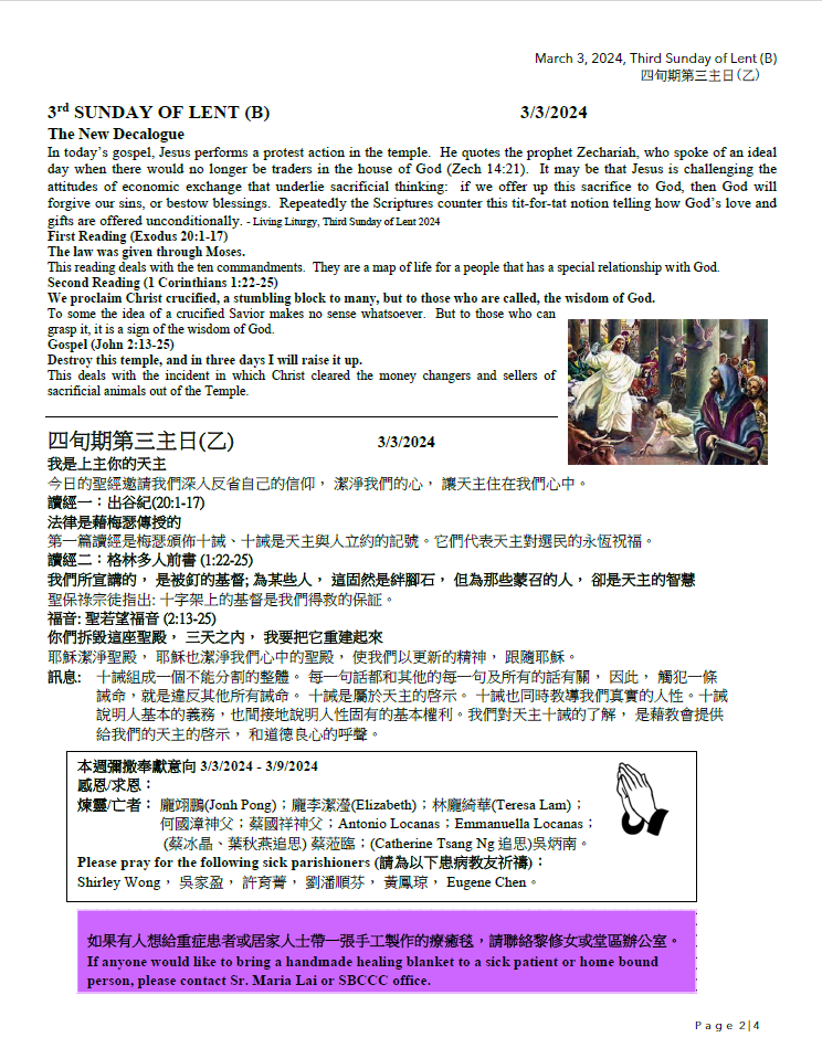 四旬期第三主日(乙) Third Sunday of Lent (B) 3-3-2024