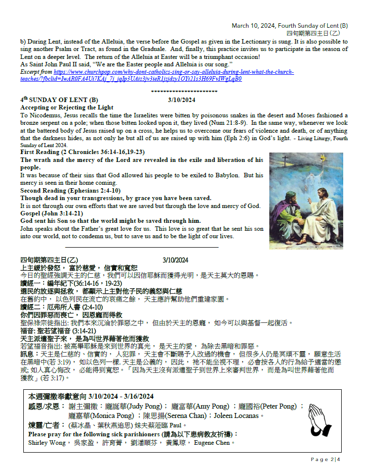 四旬期第四主日(乙) Fourth Sunday of Lent (B) 3-10-2024