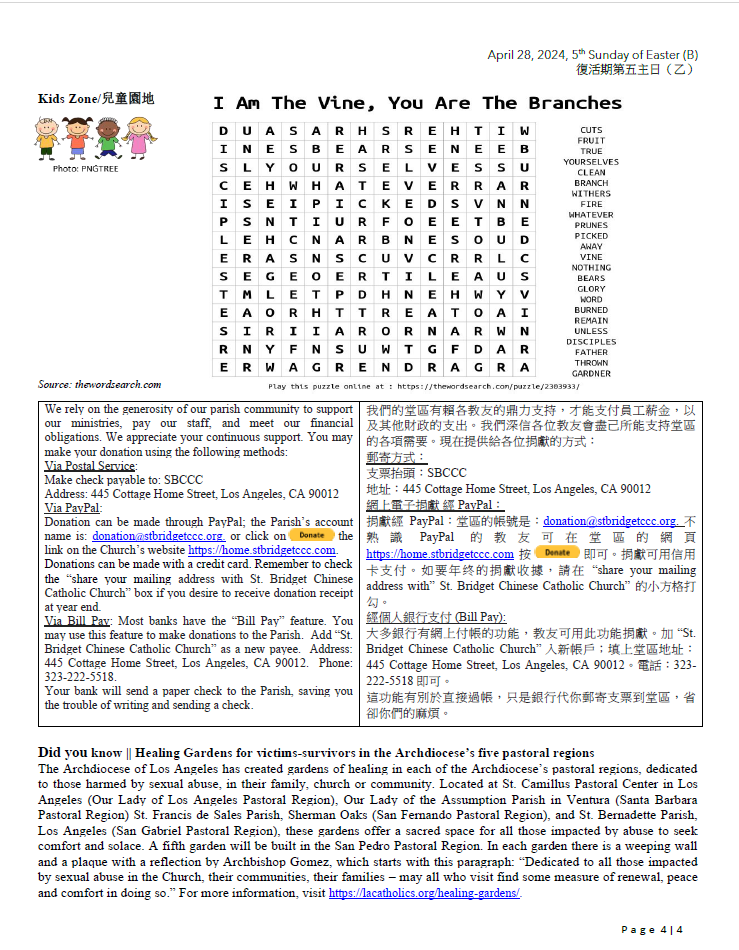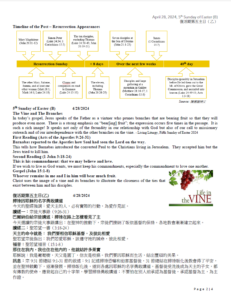 復活期第五主日(乙) 5th Sunday of Easter (B) 4-28-2024
