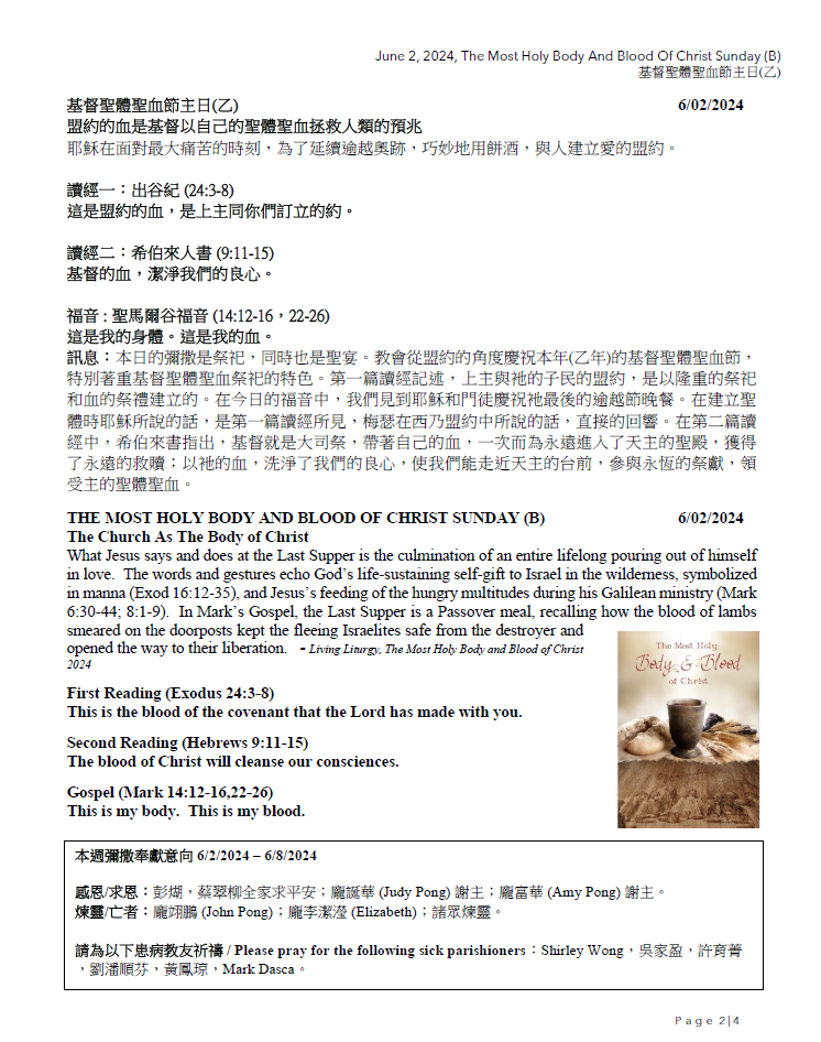 基督聖體聖血節主日(乙) The Most Holy Body And Blood Of Christ Sunday (B) 6-2-2024