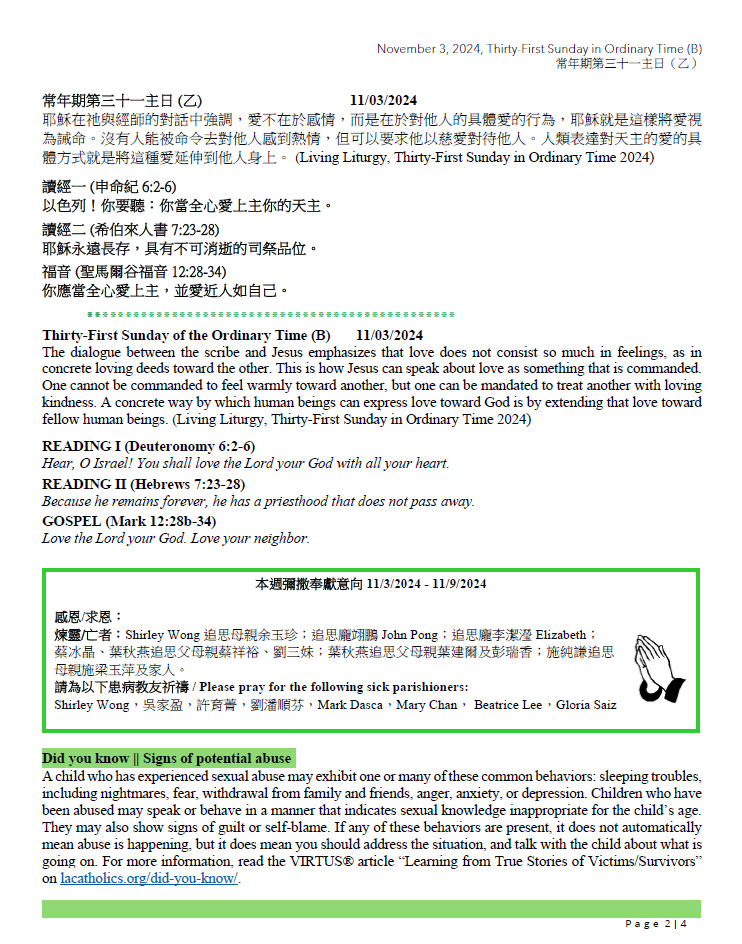 常年期第三十一主日(乙) Thirty-First Sunday in Ordinary Time(B) 11-03-2024