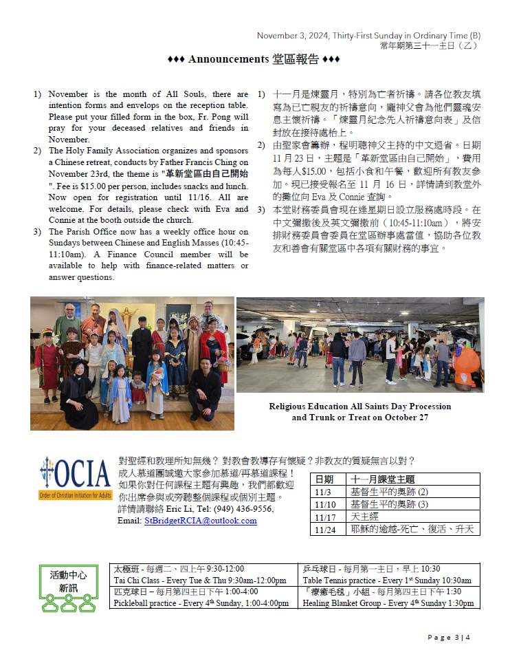 常年期第三十一主日(乙) Thirty-First Sunday in Ordinary Time(B) 11-03-2024