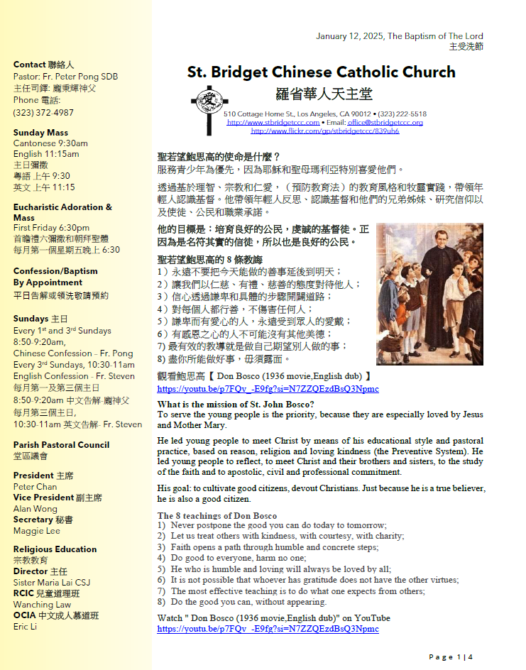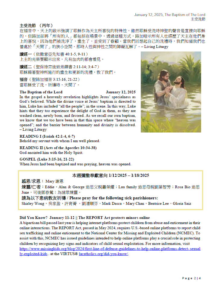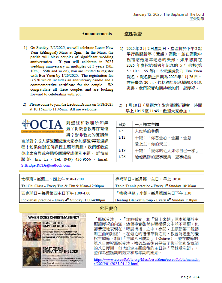 2)Please come to join the Lection Divina on 1/18/2025 at 10:15am to 11:45am. All are welcome.