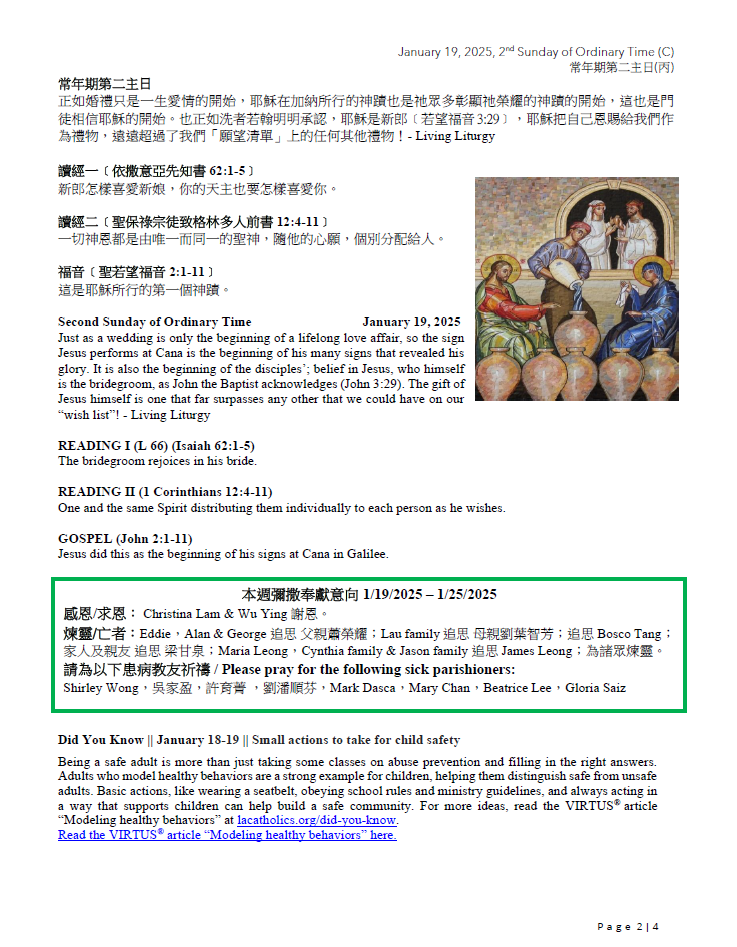 常年期第二主日(丙) January 19, 2025, 2nd Sunday of Ordinary Time (C)