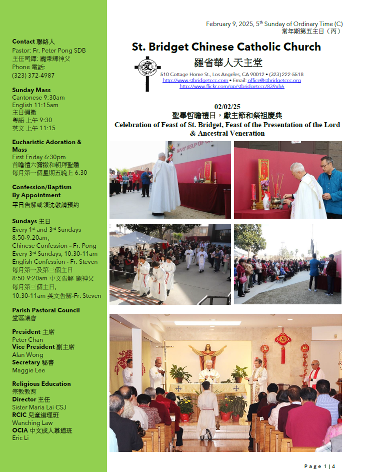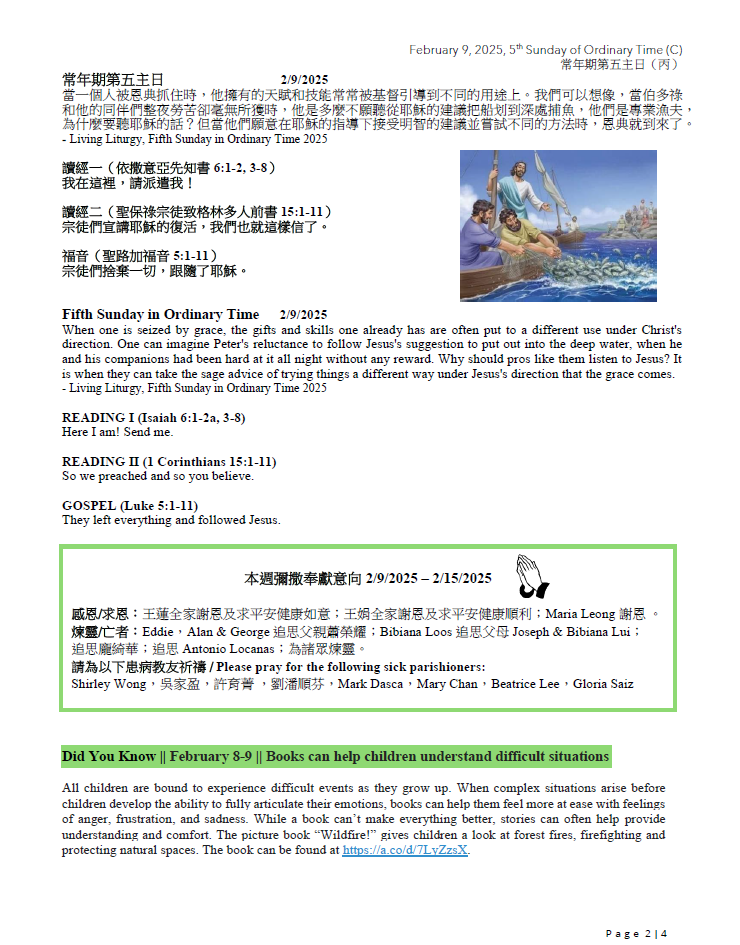 常年期第五主日(丙)February 9, 2025, 5th Sunday of Ordinary Time (C)