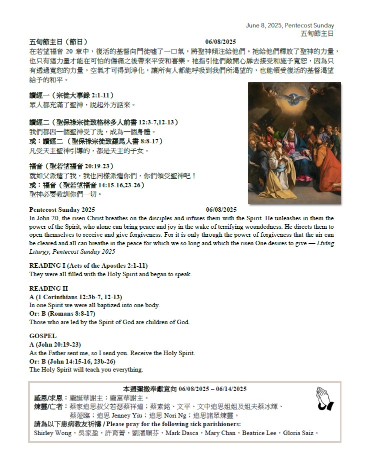 五旬節主日 June 8, 2025, Pentecost Sunday