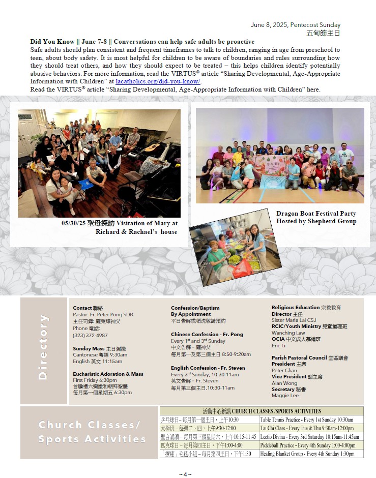 4) 聖家會於6/21 日(星期六),早上10:30 舉行會