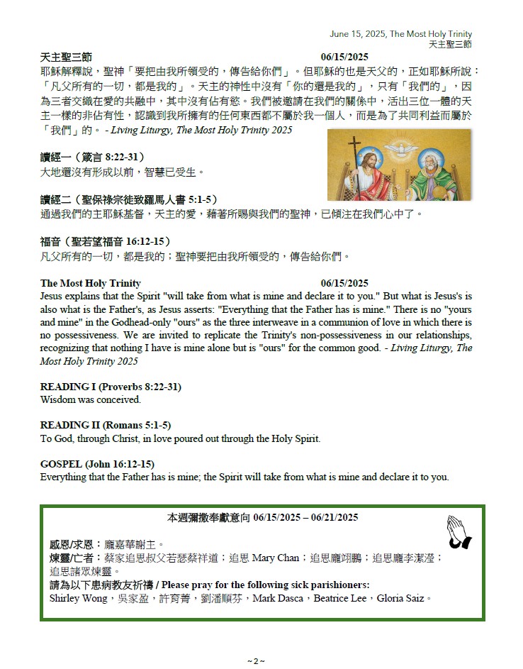 天主聖三節 June 15, 2025, The Most Holy Trinity