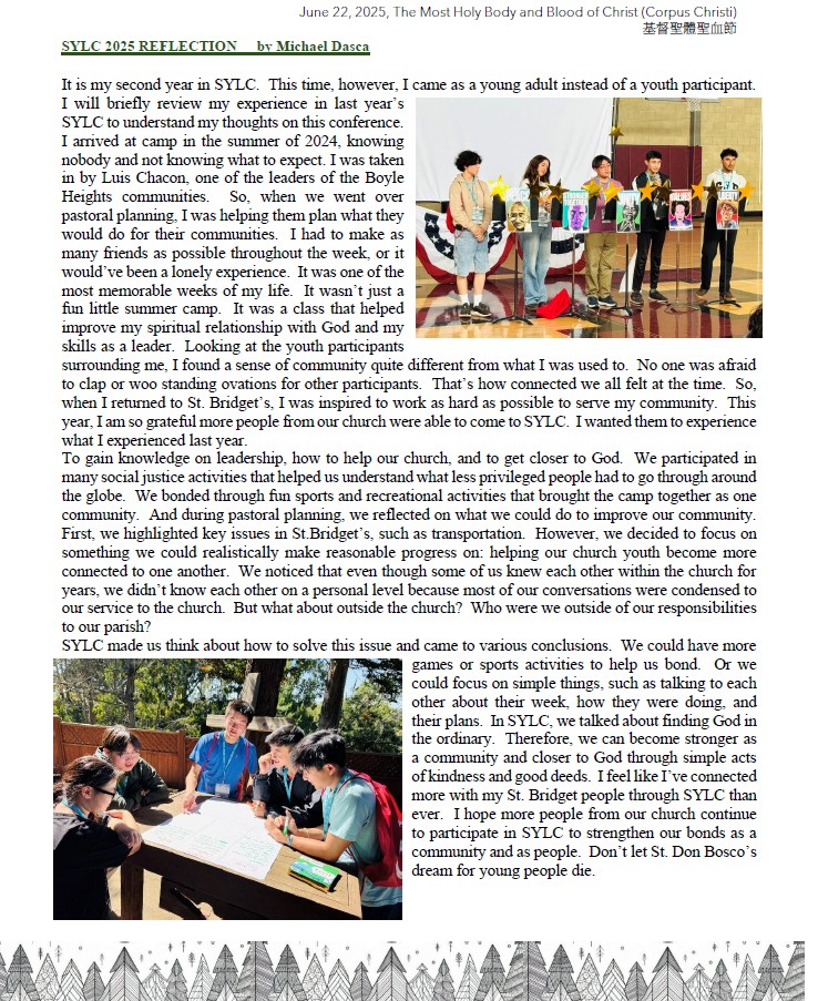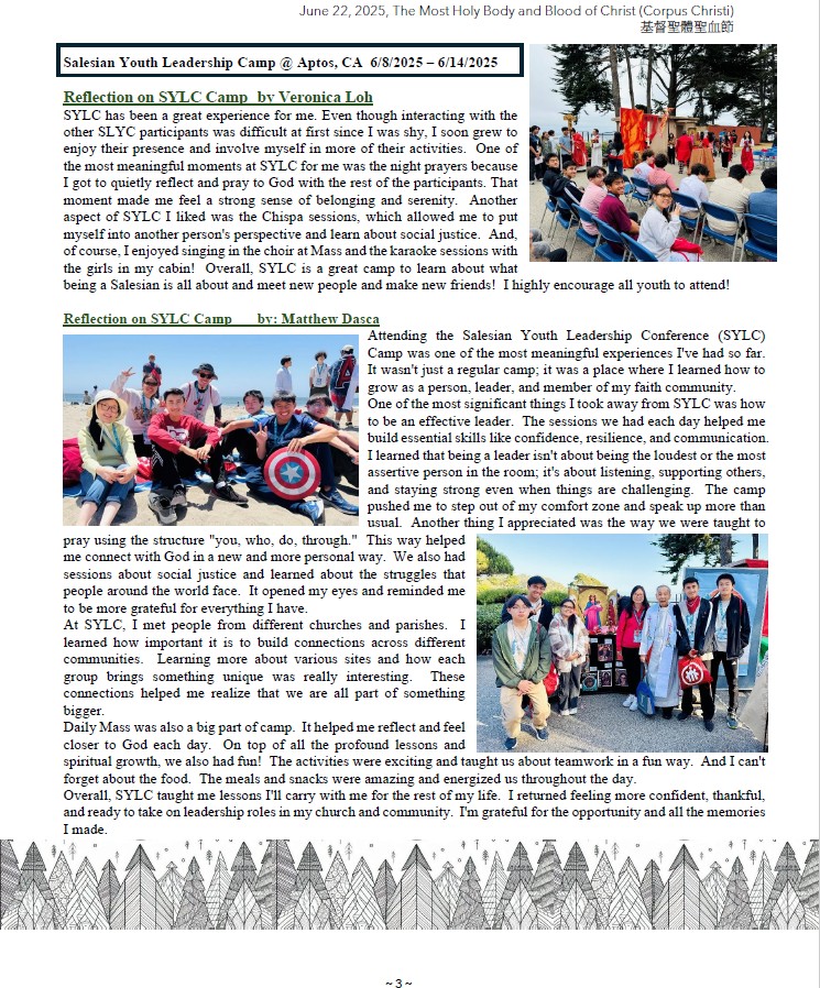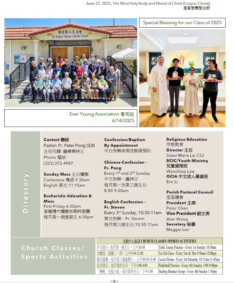 Categories News 6-22-2025 Post author By St Bridget Chinese Catholic Church Post date June 21, 2025 基督聖體聖血節 June 22, 2025, The Most Holy Body and Blood of Christ (Corpus Christi) Share Us: Click to share on Facebook (Opens in new window) Facebook Click to share on WhatsApp (Opens in new window) WhatsApp Click to email a link to a friend (Opens in new window) Email Click to print (Opens in new window) Print Like Loading... Related ← 6-15-2025 → 6-29-2025