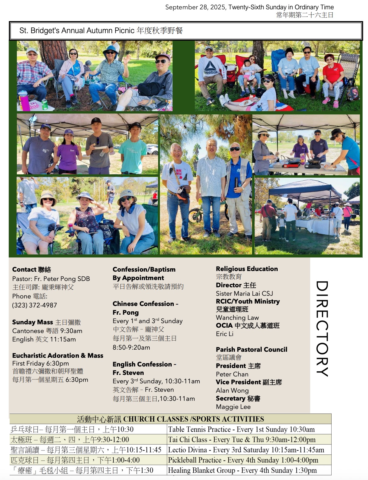 2) All parishioners are invited to join our Mid-Autumn Festival Celebration on Sunday, October 5, immediately following the English Mass until 3:00 pm at the Mary Help of Christians Center.