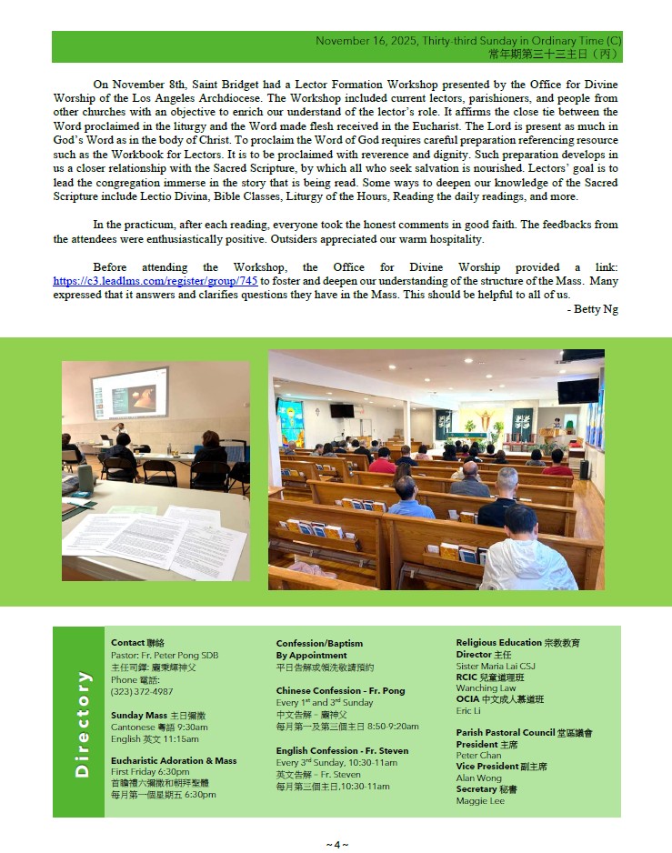 常年期第三十三主日(丙)November 16, 2025, Thirty-third Sunday in Ordinary Time (C)