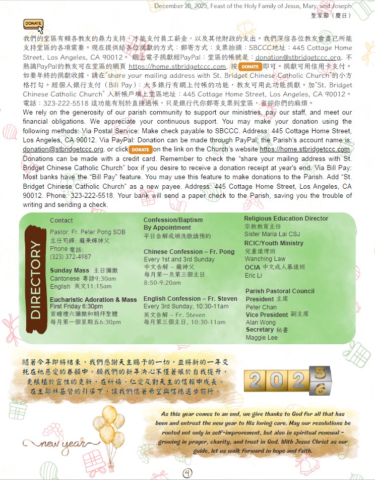 3.堂區財務委員會提醒:由於捐獻信封已不