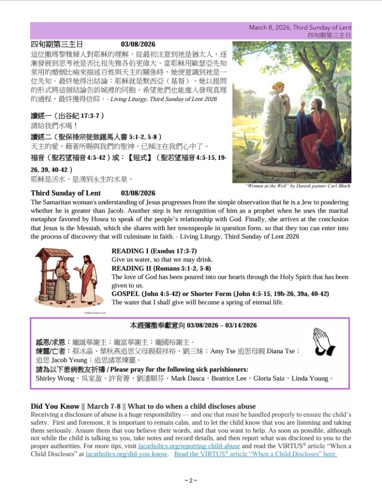四旬期第三主日 March 8, 2026, Third Sunday of Lent