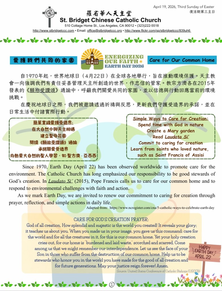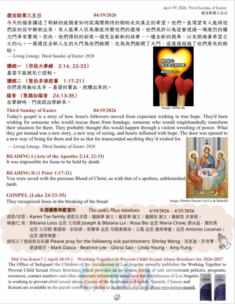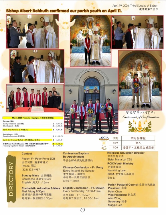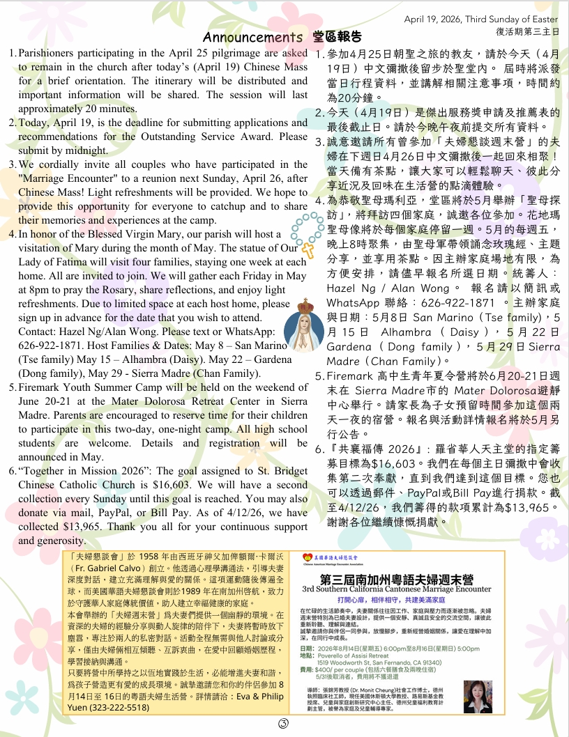 婦在下週日4月26日中文彌撒後一起回來相聚!